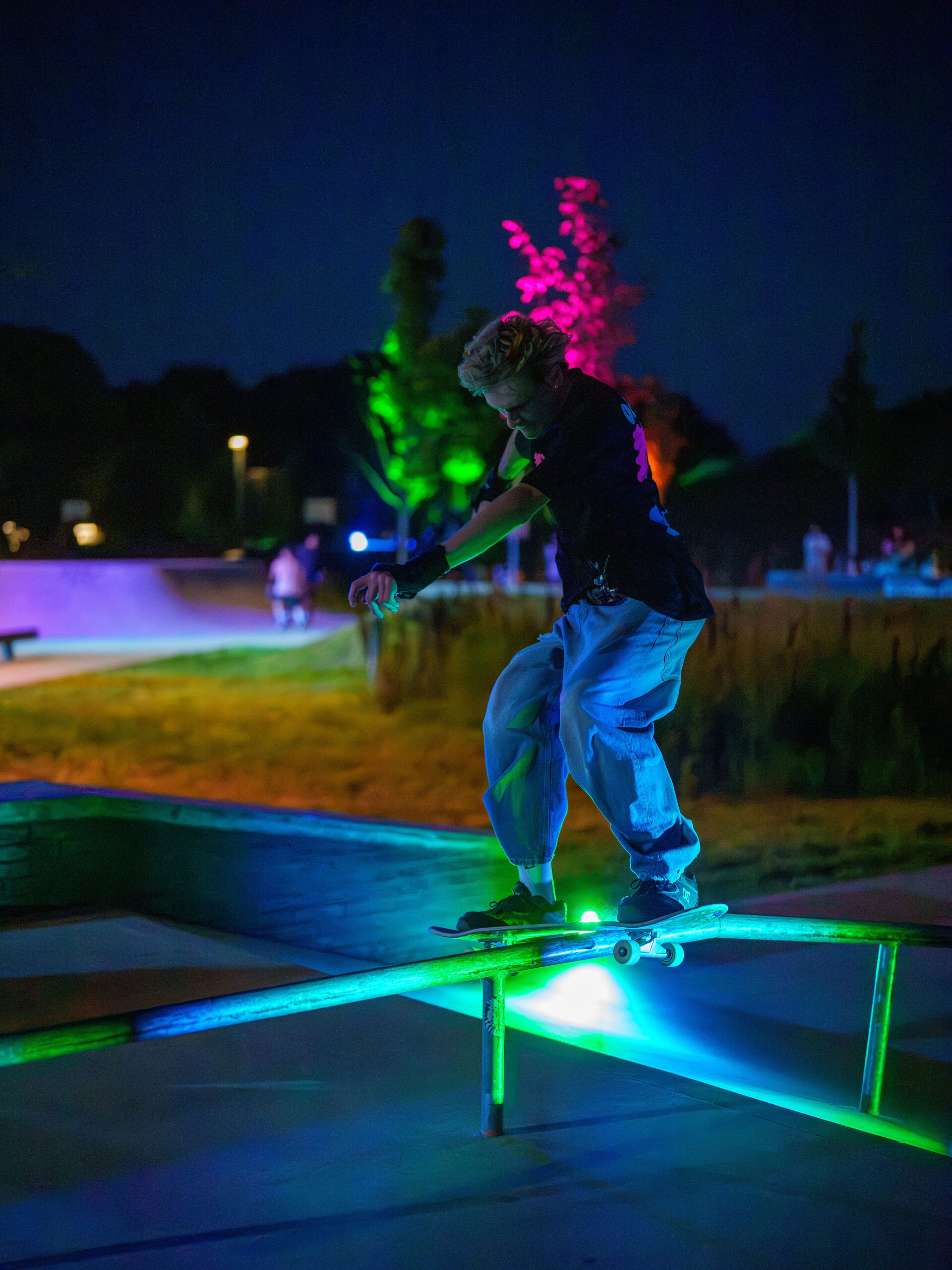 Am Samstag, den 9. August 2025, startete die Moonlight Session im Sport- und Freizeitpark Hombruch in ihr fünftes Jahr. Ein Event der Jugendfreizeitstätte Hombruch gemeinsam mit dem Büro für Kinder- und Jugendinteressen. Mithilfe von EventVision wurde die Anlage von 18 bis 24 Uhr in ein farbenfrohes Lichtspektakel verwandelt, das zahlreiche Besucherinnen und Besucher anzog.